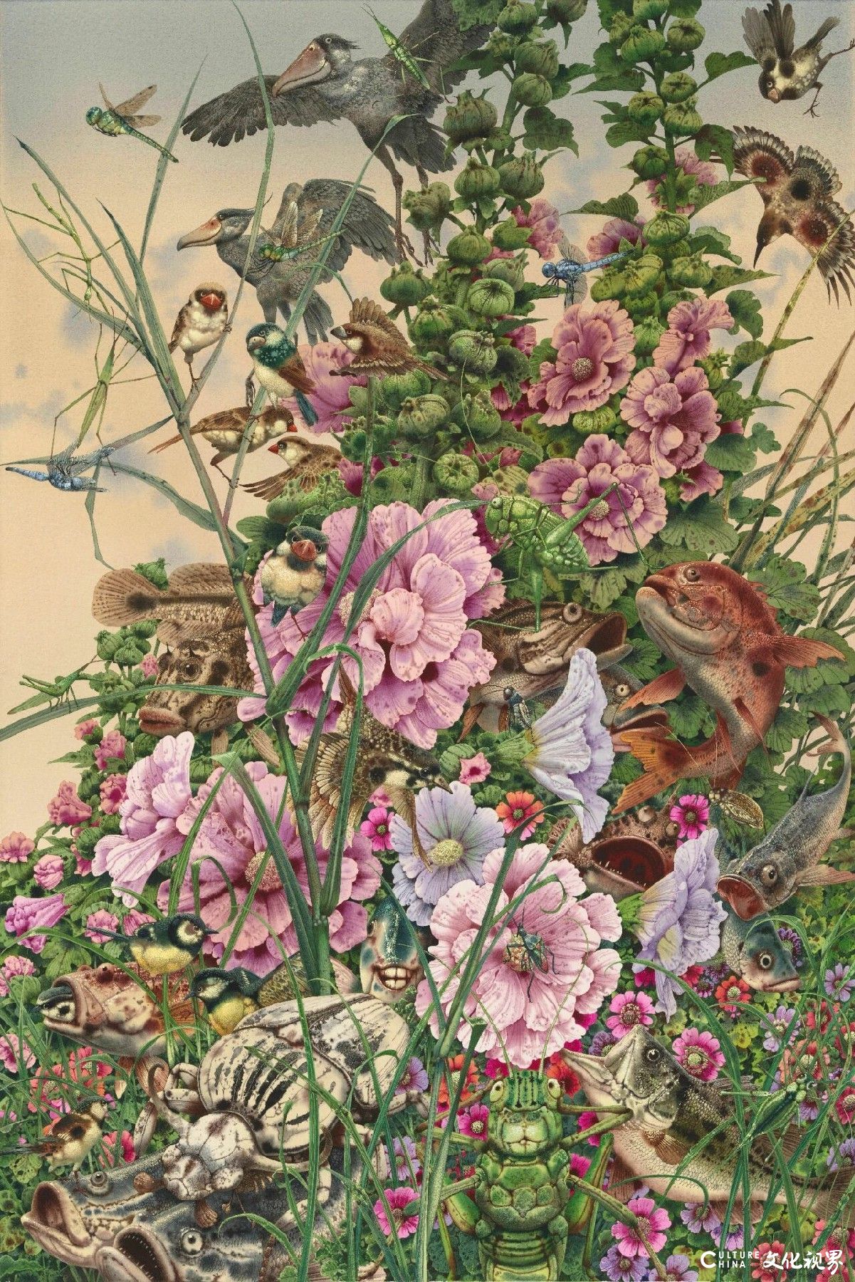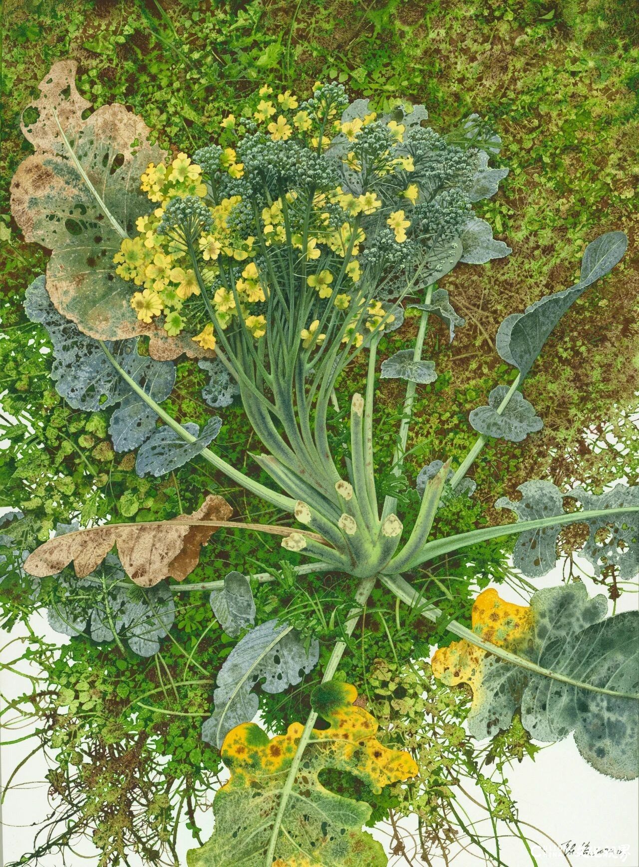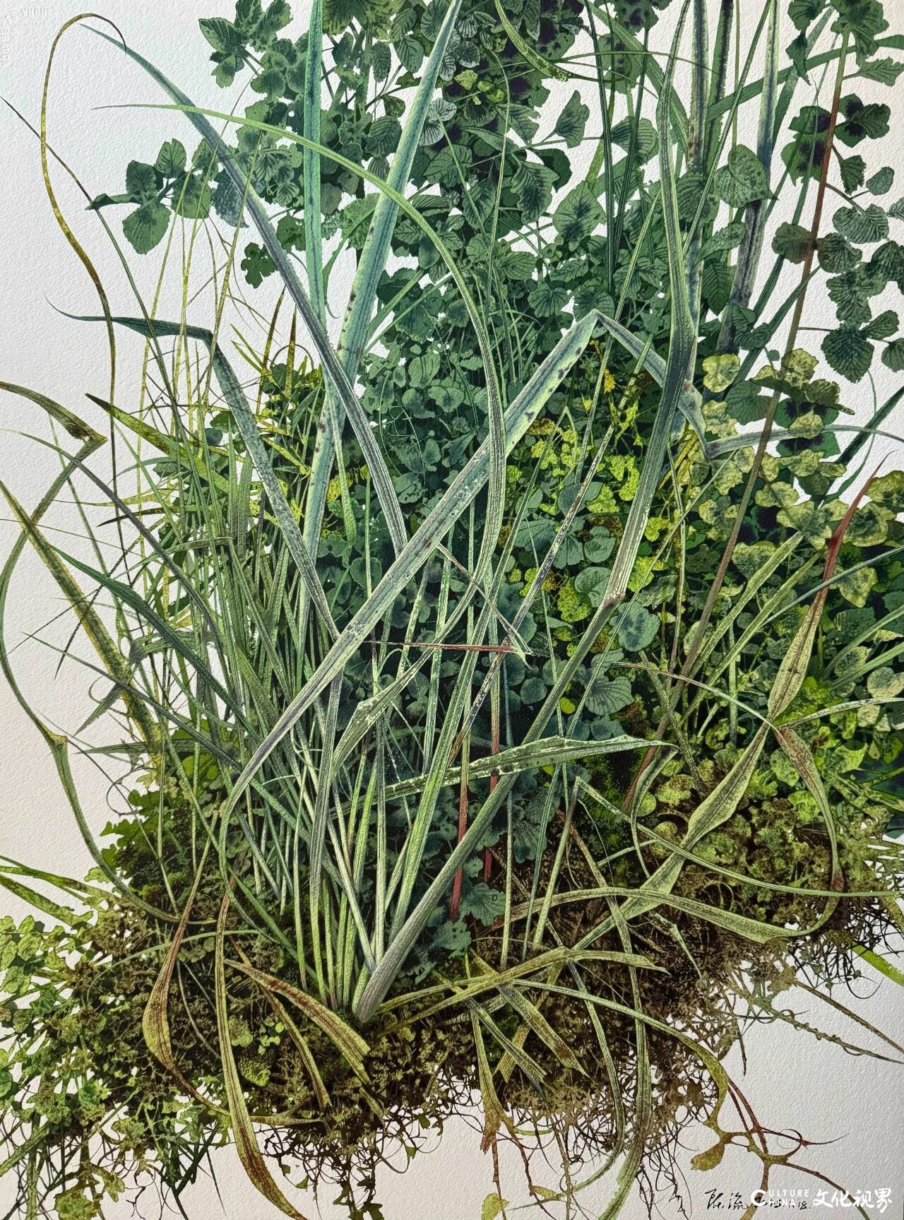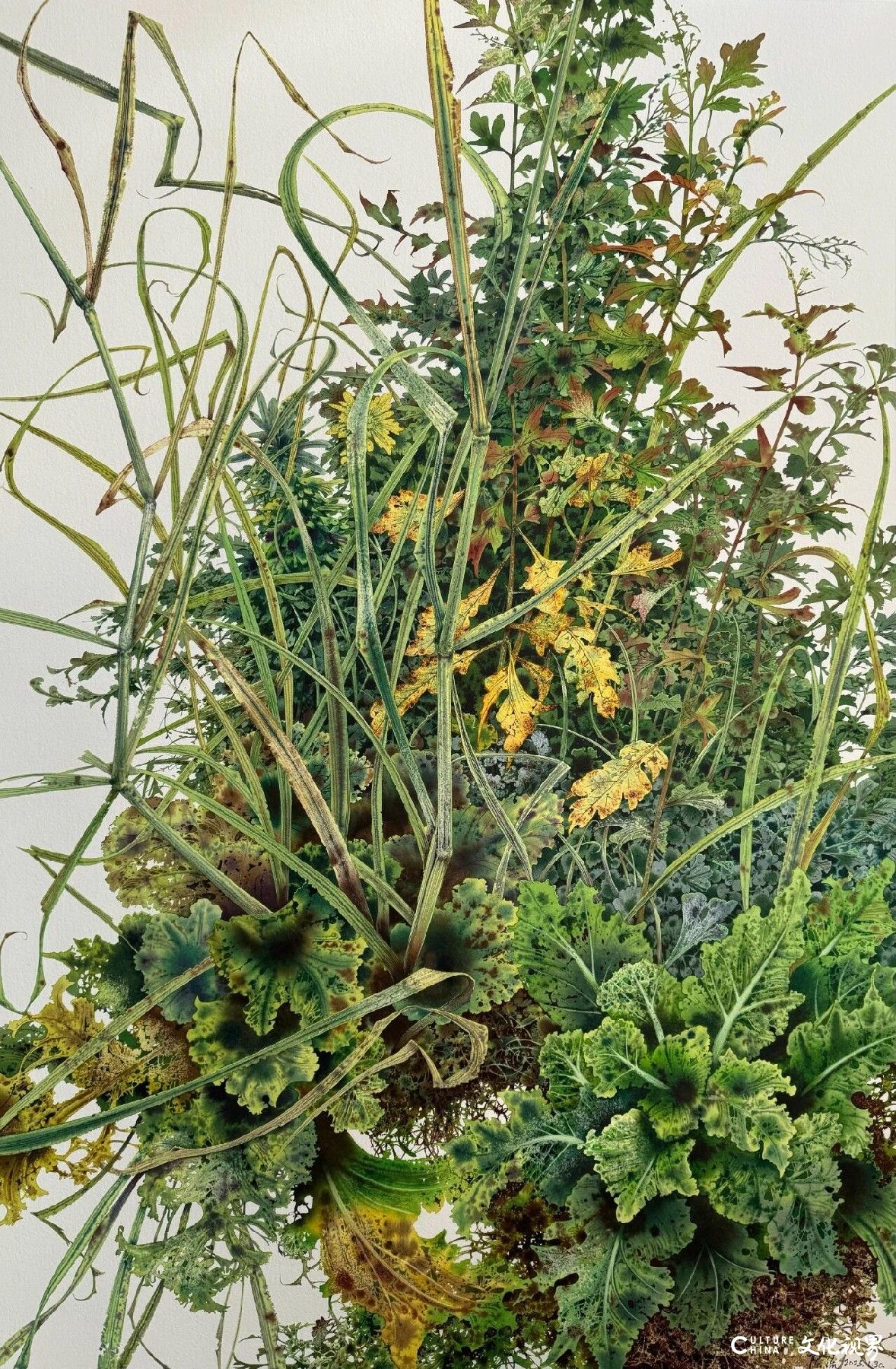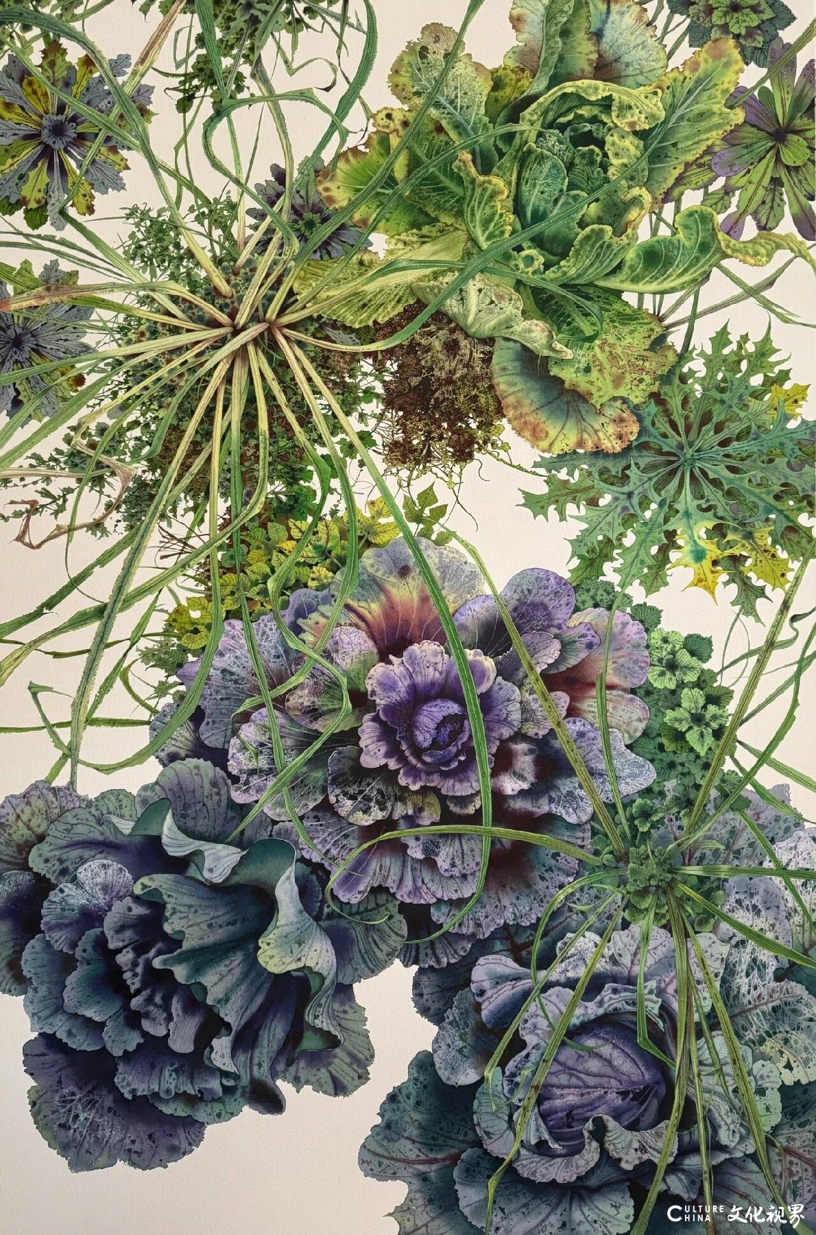 因为有了充裕的时间,我真的放慢了绘画的节奏。尽管每天的作画时间仍保持在8至10小时,但为了充分表达作品的细节与质感,我投入到每一幅作品的时间都成倍增长。时间如同一位神奇的雕刻师,在对象身上刻录下细腻的肌理与痕迹,而我则如同一位敏锐的捕捉者,将这些细微之处更好地呈现在画面上。叶脉上精致如丝的纹理、残缺枝叶中透露出的顽强生命痕迹,以及花粉在微风中轻轻摇曳所展现出的轻盈姿态,都在微观视角下被无限放大,成为我作品中独特的元素。而我的绘画,也在充裕的时间里完成了相对充分的表达,逐步形成了自己独具特色的绘画语境。
