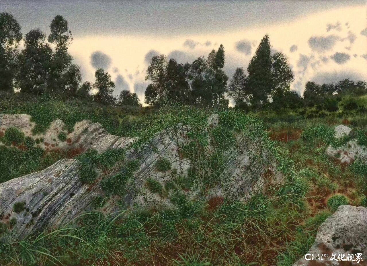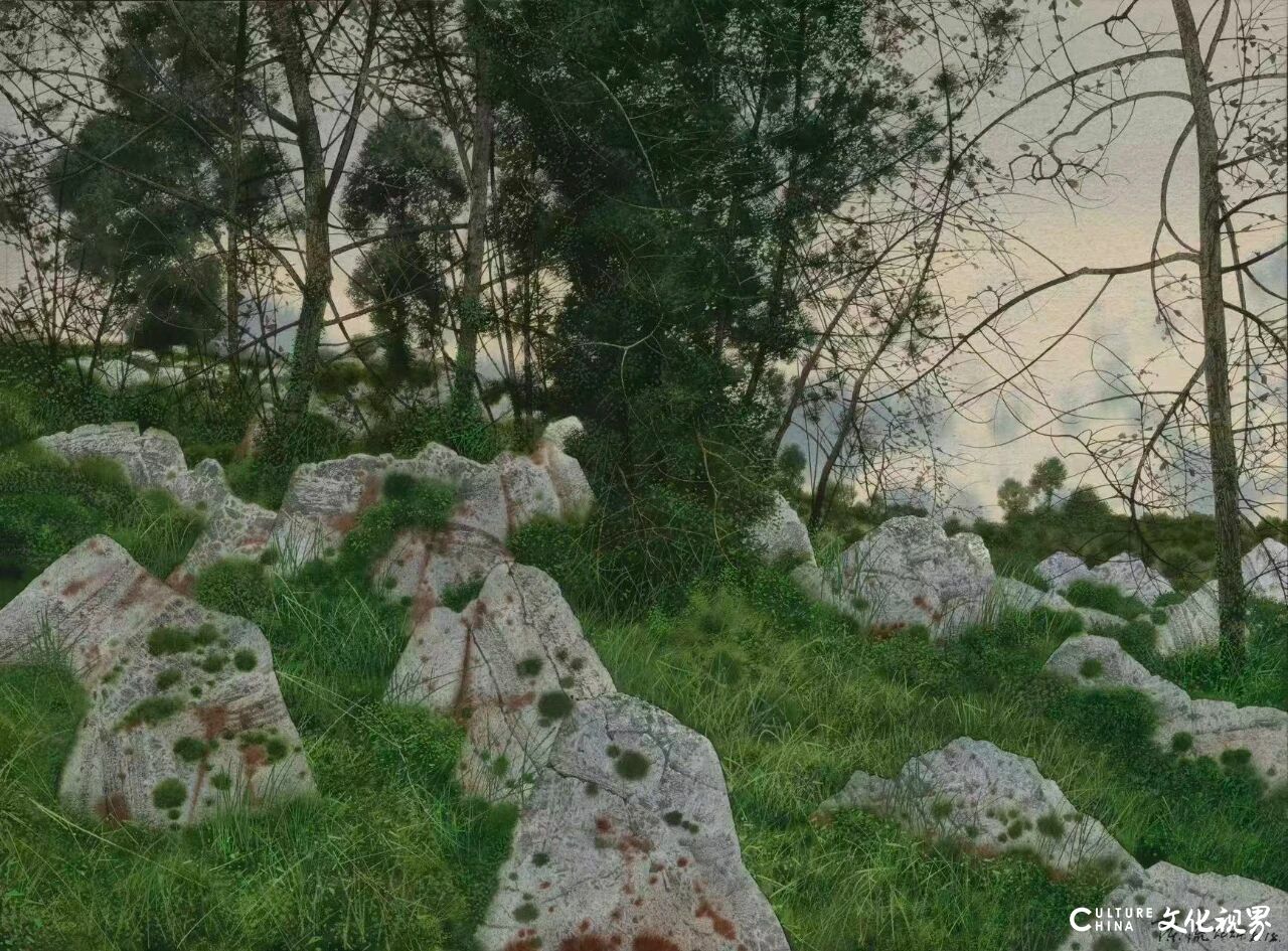 怀旧与尊重,是我近年来创作状态和动机中不可或缺的组成部分。这是岁月流逝、自己慢慢变老的过程中自然赋予的时间属性与思想沉淀。我时常怀念家乡那片熟悉的山水家园,那里的一草一木、一山一水都承载着我童年的回忆和深深的眷恋:同时,我也尊重身处之地的人文与自然,用心去感受每一座城市、每一片土地的独特魅力。昆明的野地与杭州的绿影,都以各自独特的方式呈现着我的感受,成为我创作中不可或缺的灵感源泉。柳杉的古老、磅礴、沉稳,仿佛是岁月的守护者;石林的光怪陆离,犹如大自然的鬼斧神工,让人惊叹不已。它们是生命轨迹中的形象投射,戏剧性地出现在我生命中的每一个节点与瞬间,成为我存在过的痕迹与思绪变化的有力见证。