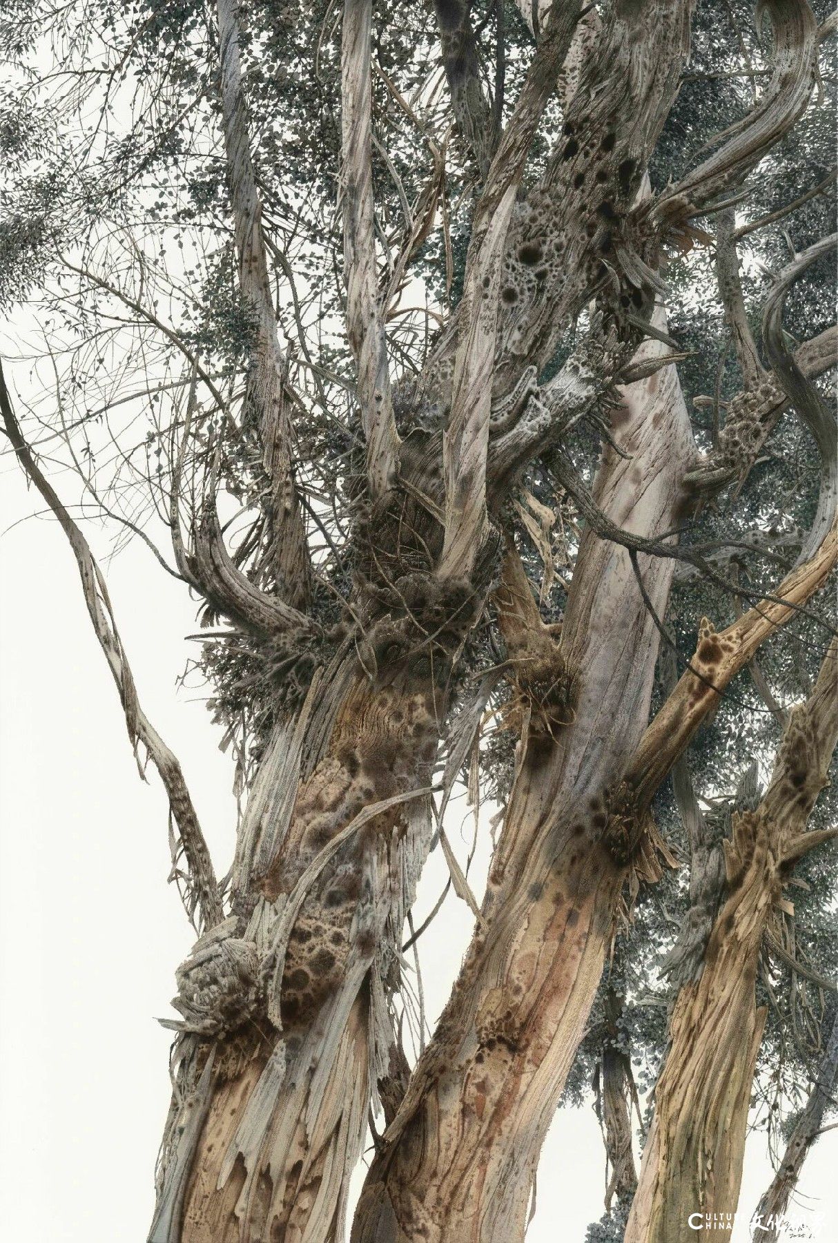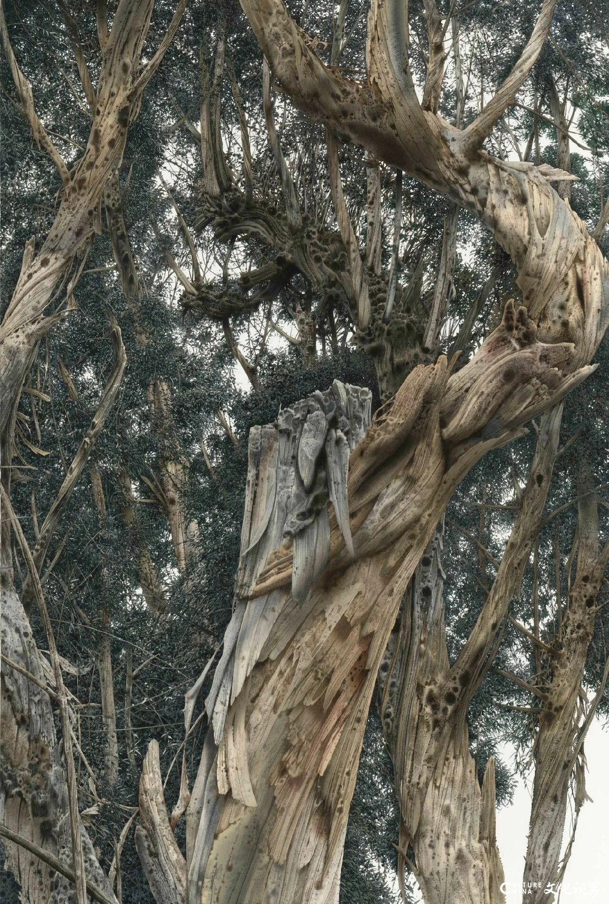 野草的繁杂错落、桉树的扭曲蜿蜒、柳杉的静默守望,这些自然界的景象如同磁石一般,真切地吸引着我的目光,让我与之产生深深的共情。它们仿佛拥有灵性,早已洞悉我内心的所思所想,在无声中助力我在绘画的世界里达到自治的境界。
