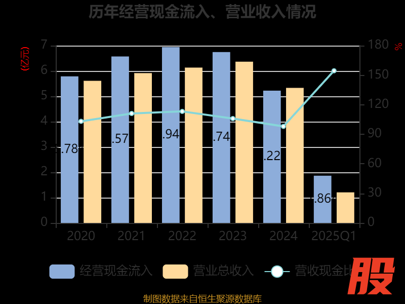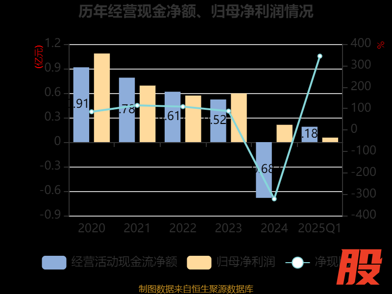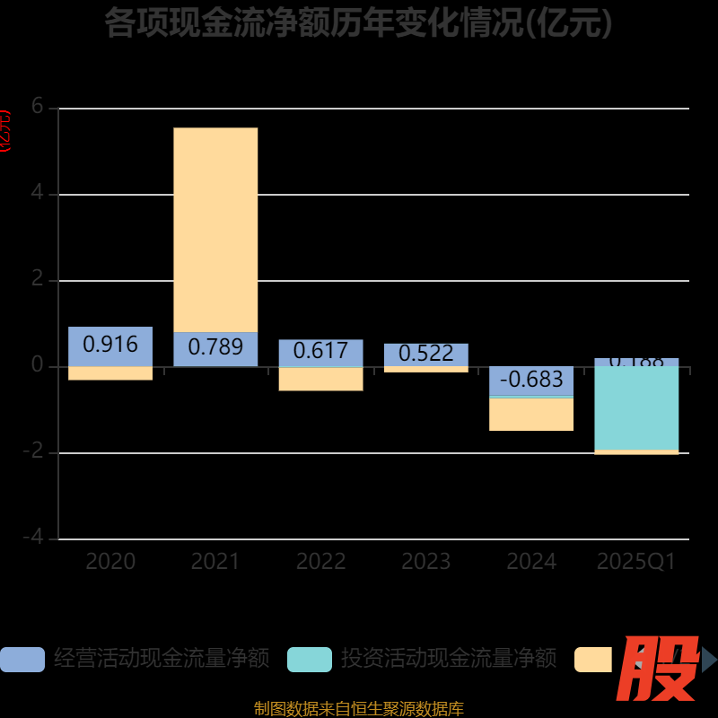 截至2025年一季度末,公司经营活动现金流净额为1878.03万元,同比增加7883.97万元;筹资活动现金流净额-1158.54万元,同比减少970万元;投资活动现金流净额-1.94亿元,上年同期为-1.36亿元。