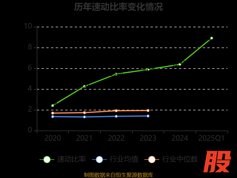 2025年第一季度,公司流动比率为9.21,速动比率为8.9。