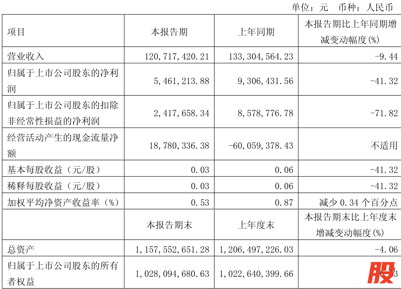 中证智能财讯新炬网络(605398)4月26日披露2025年第一季度报告。公司实现营业总收入1.21亿元,同比下降9.44%;归母净利润546.12万元,同比下降41.32%;扣非净利润241.77万元,同比下降71.82%;经营活动产生的现金流量净额为1878.03万元,上年同期为-6005.94万元;报告期内,新炬网络基本每股收益为0.03元,加权平均净资产收益率为0.53%。